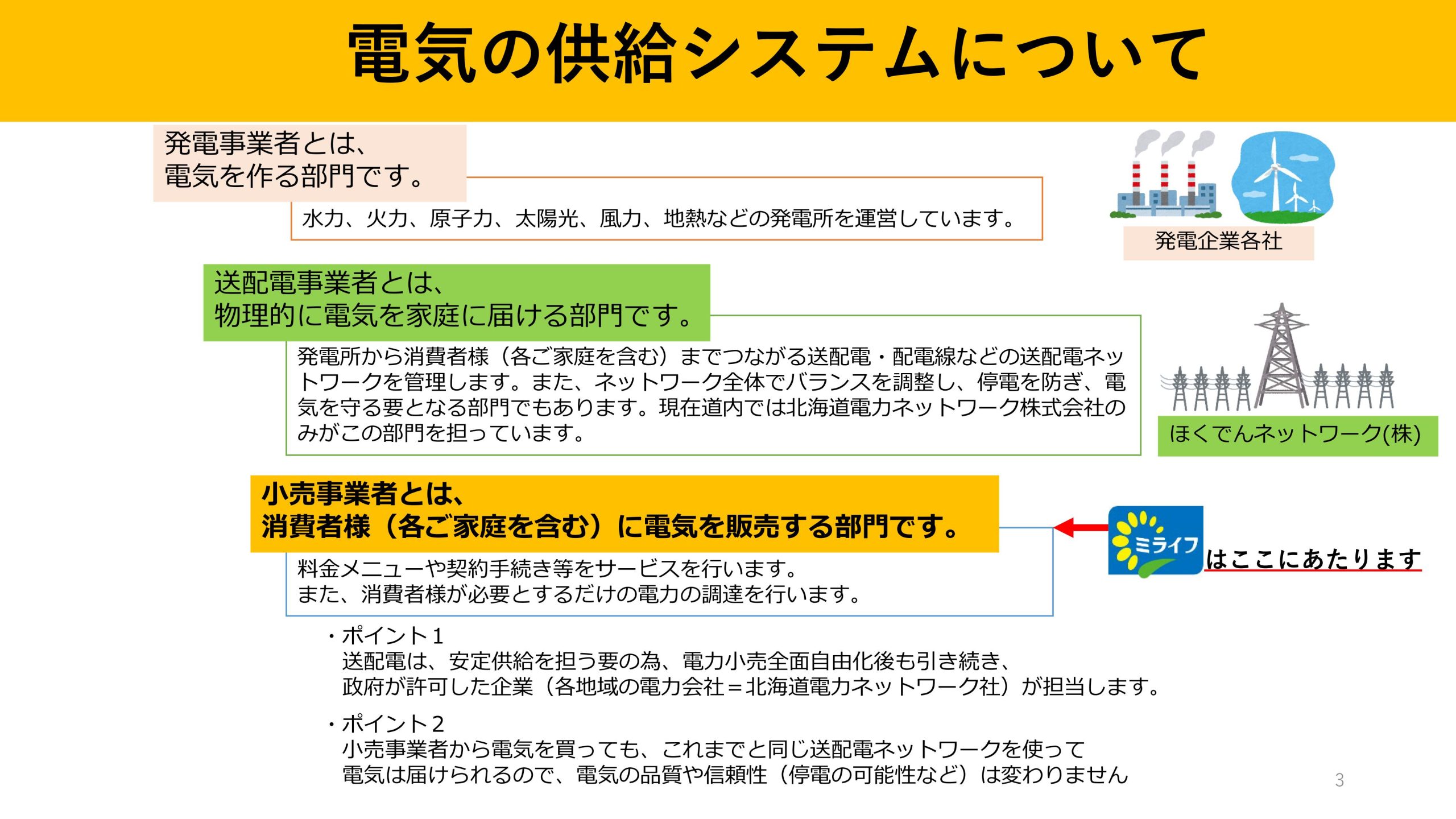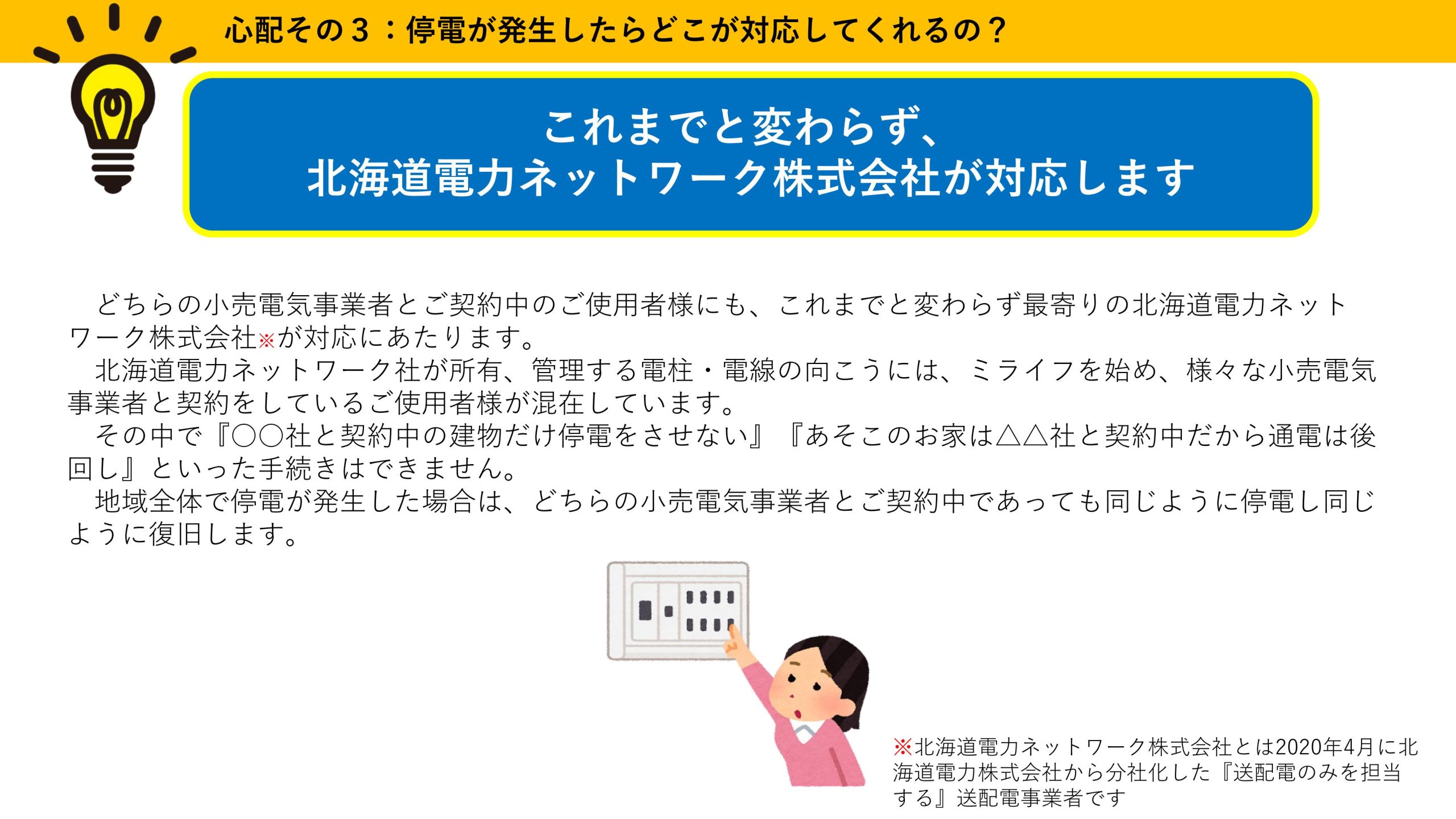 電力会社を変えるにあたって気になる疑問点をミライフ北海道株式会社様がまとめてくださっています。