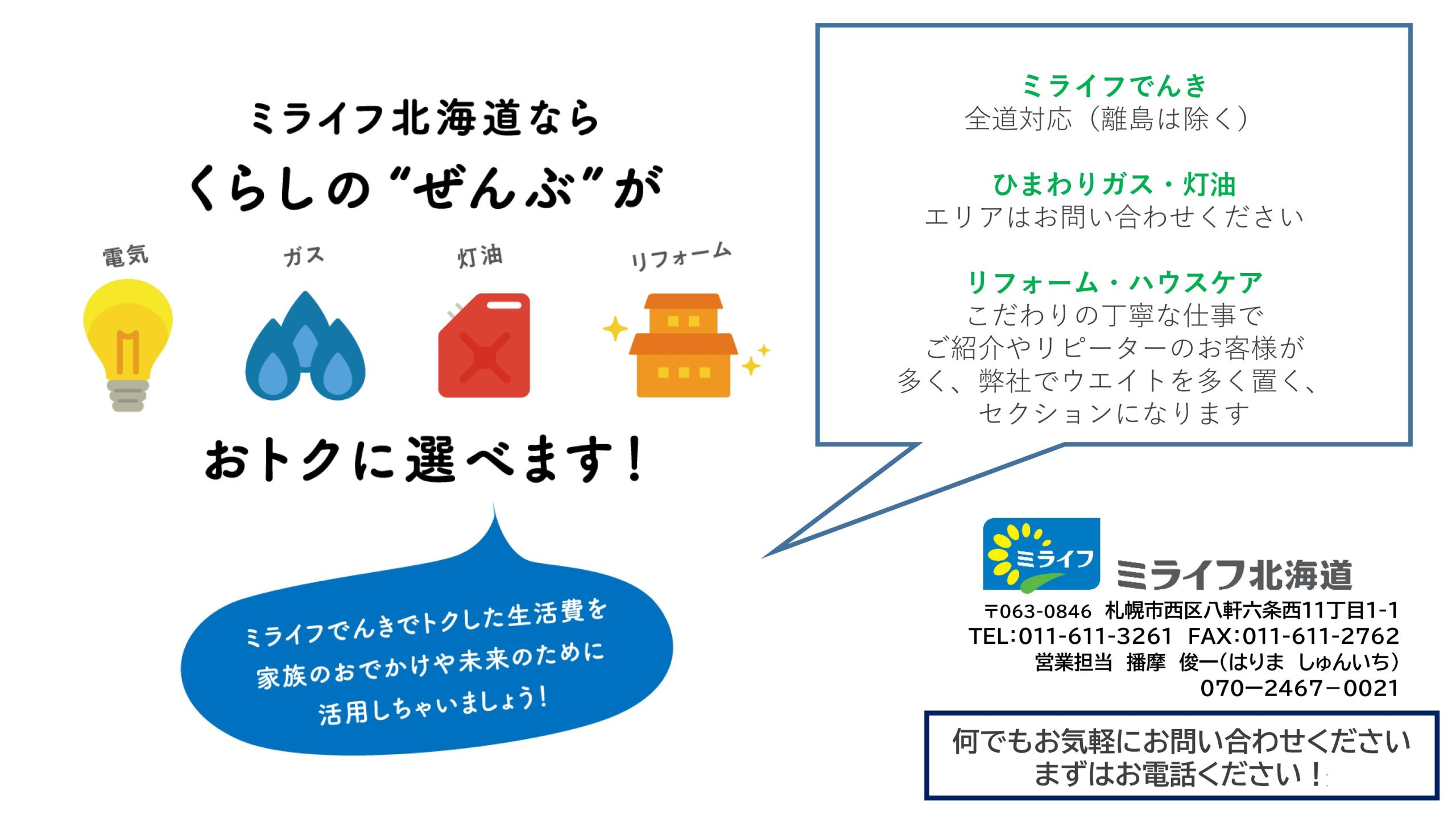 ミライフ北海道株式会社様とのやり取りでご成約いただけましたら、電気をオトクに使える生活がスタート!